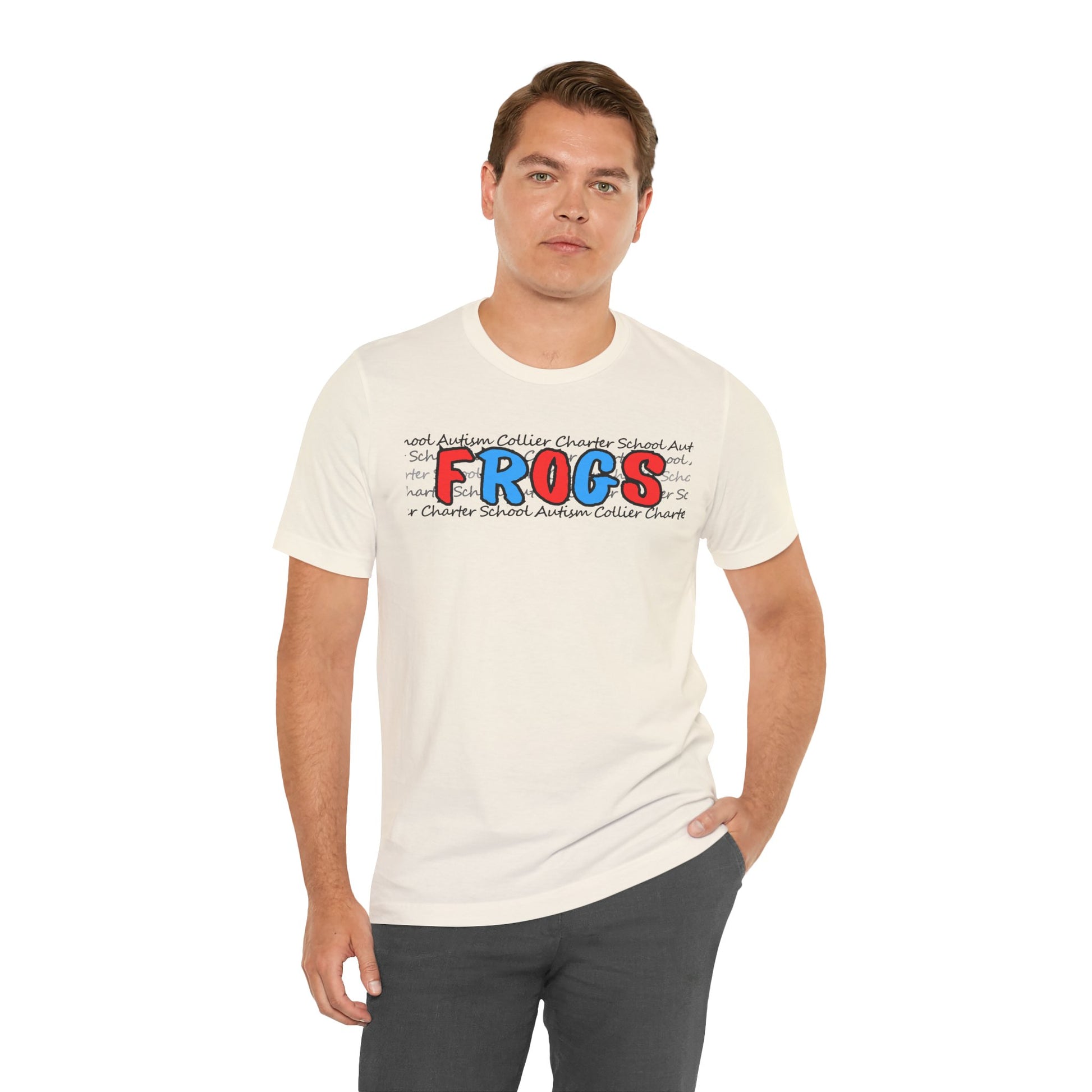 This unisex jersey short sleeve t-shirt is perfect for showing PATRIOTIC school spirit at Autism Collier Charter School, featuring the mascot, the Frogs. Made with 100% Airlume combed and ring-spun cotton, this lightweight fabric is breathable and ideal for active or leisure wear. The retail fit and classic crew neckline make it versatile for casual and semi-formal settings. Suitable for adults, this t-shirt is REACH Certified and sourced from Honduras.