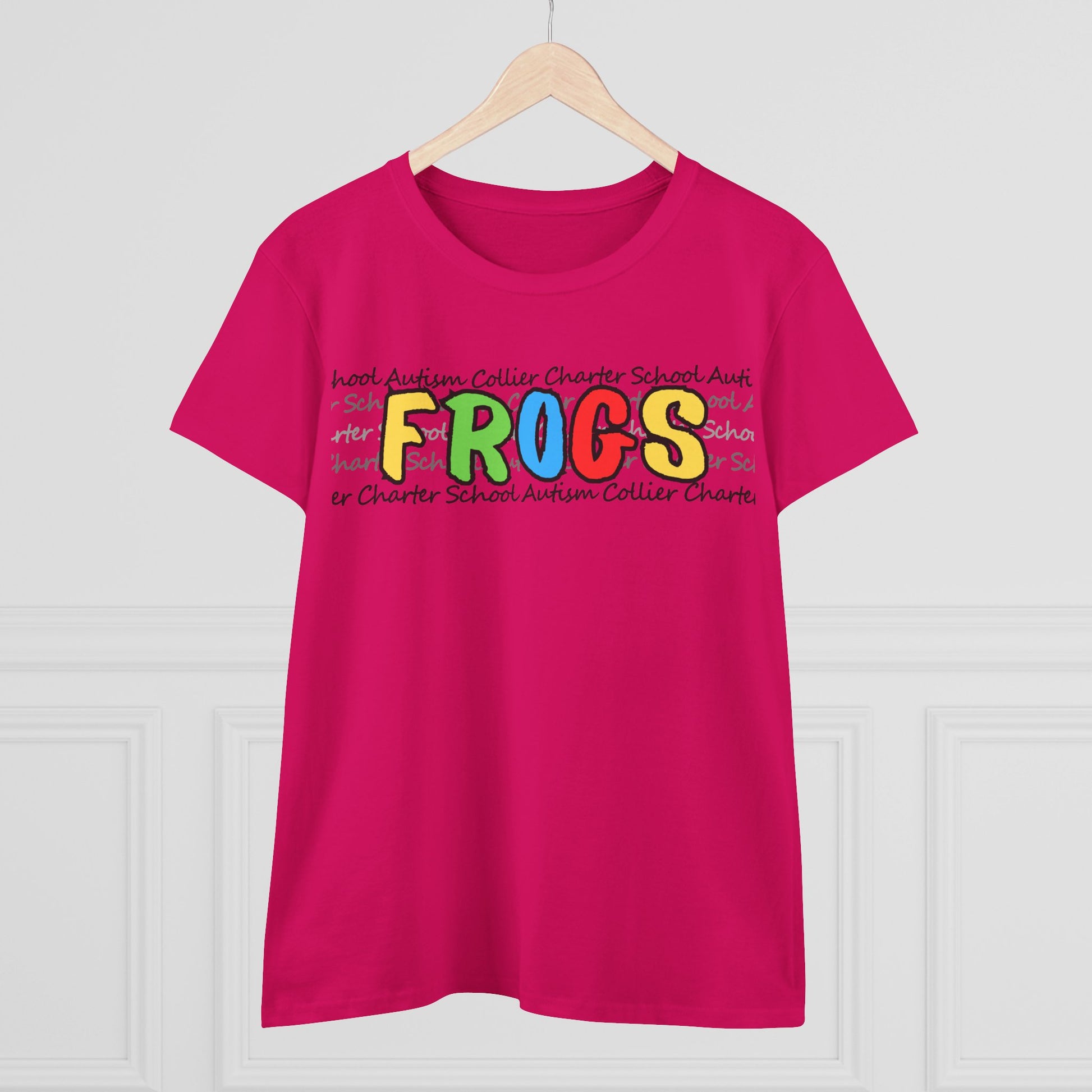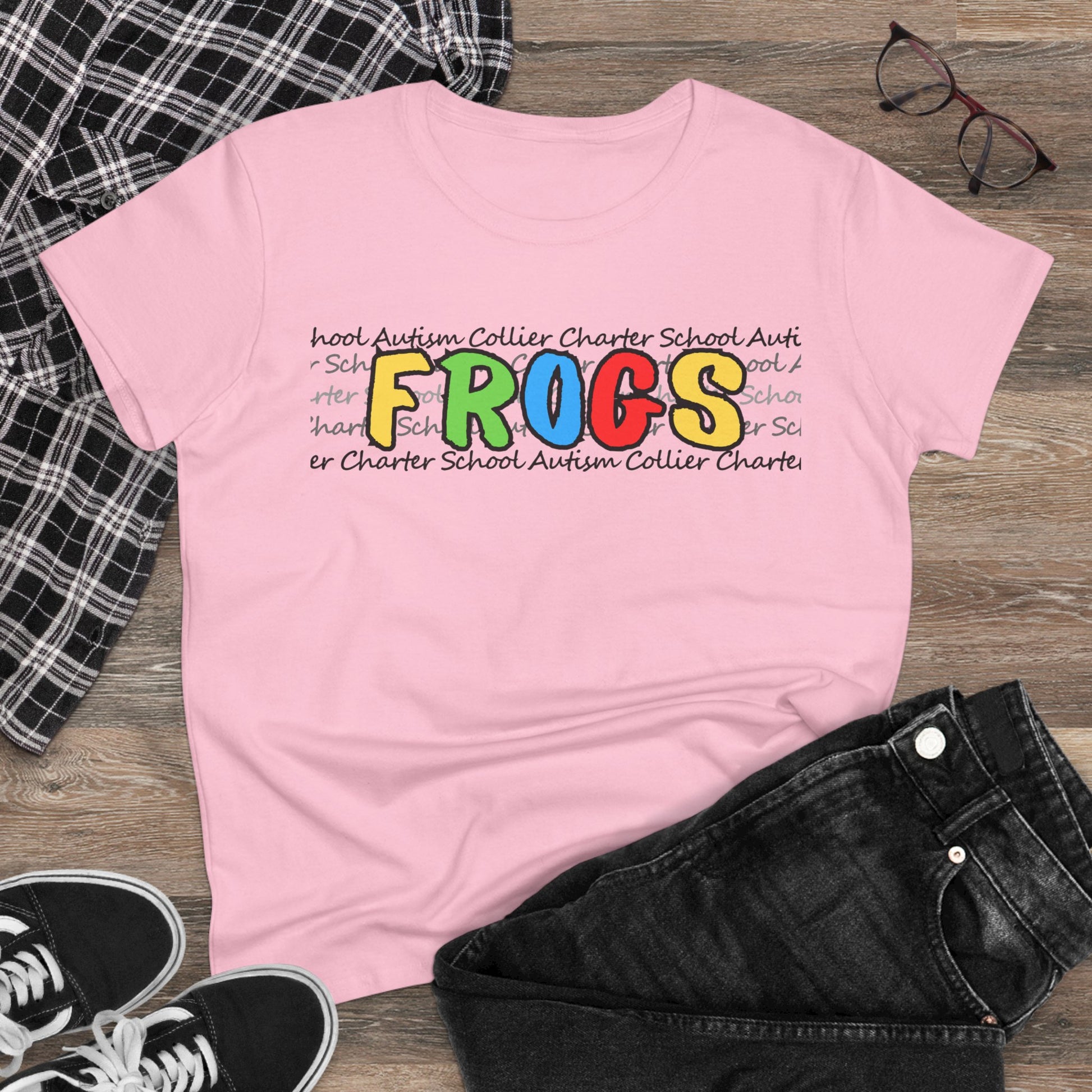 This women's jersey short sleeve t-shirt is perfect for showing school spirit at Autism Collier Charter School, featuring the mascot, the Frogs. Made with 100% Airlume combed and ring-spun cotton, this lightweight fabric is breathable and ideal for active or leisure wear. The retail fit and classic crew neckline make it versatile for casual and semi-formal settings. Suitable for adults, this t-shirt is REACH Certified and sourced from Honduras.